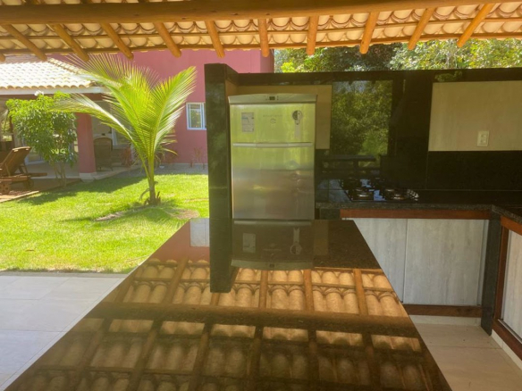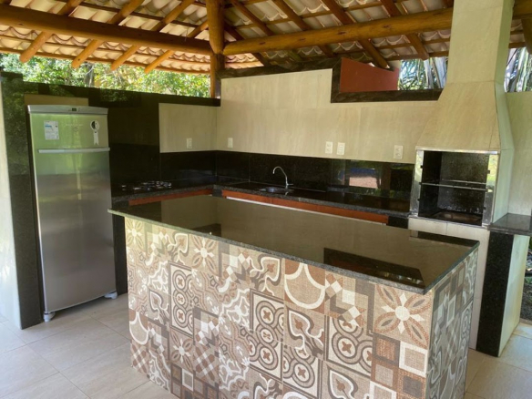 In the Quintas de Sauípe condominium. • Lot area: 1,100 m²; • Built area: 350 m²; • 4 suites, including 1 on the ground floor and 3 on the upper floor; • Powder room; • Full staff quarters; • Fully equipped gourmet area, including built-in cabinetry, bathroom, and barbecue; • All suites have air conditioning and built-in wardrobes; • Fully fitted kitchen with built-in cabinetry; • Living and dining rooms; • Swimming pool; • Veranda; • Garden; • Private parking for 6 cars; • Internet; • Close to the lagoon and the club.