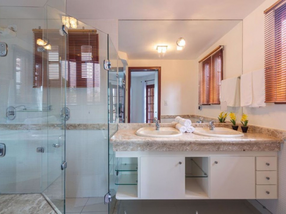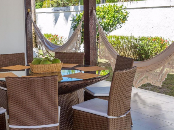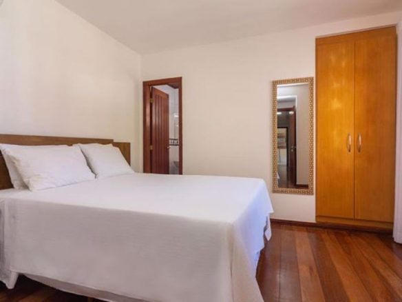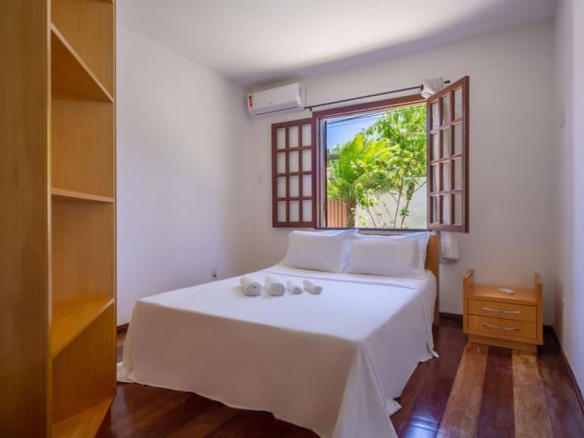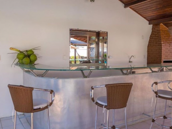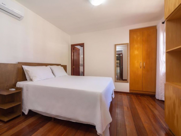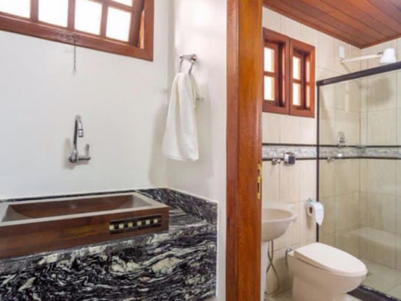 Exclusive residence for living or business investment, with potential for a guesthouse or boutique inn. • Two large suites, one with a jacuzzi and deck, wardrobe, split air conditioning and balcony, and the other with wardrobes and split air conditioning. • 3 large bedrooms, all with split air conditioning (however, 2 of them were previously a dining room that can be restored by removing the drywall partition). • 1 guest bathroom. • 1 powder room. • Large living room. • The flooring throughout the residence is entirely wood, and the house is also constructed with Paraju wood. • Large kitchen with cabinets and a pantry. • The outdoor area of the residence features 2 additional bedrooms (one double and one single) and another bathroom. • The service area includes a double bedroom with a staff bathroom. • Gourmet area features a bar with a barbecue grill. • Large concrete swimming pool. • Deck. • Open garage. • The residence is equipped with a security camera system. • Equipped with an alarm system (needs to be reactivated).