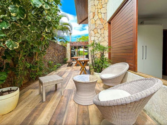 Spacious beach house located in Praia do Forte, offering complete comfort and convenience for your entire family. • 05 spacious suites, thoughtfully designed to ensure comfort and tranquility; • The large dining room is perfect for entertaining friends and family; • The house features a spacious gourmet area with a pool and deck; • Large, fully equipped kitchen; • Parking space; • Gated community with 24-hour security;
