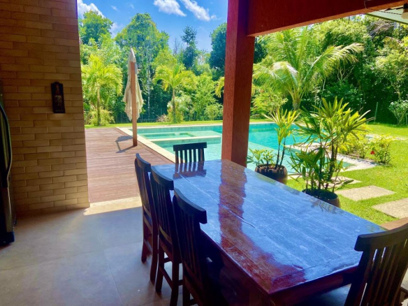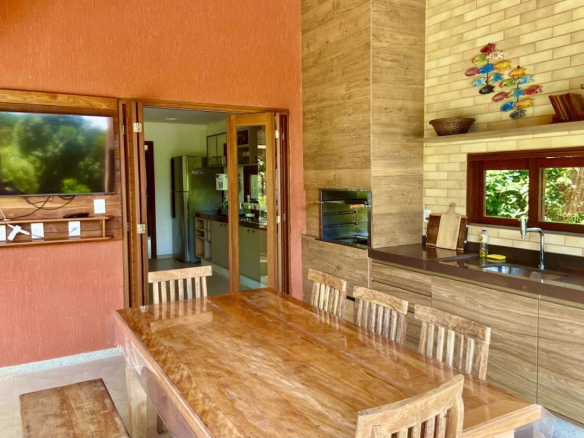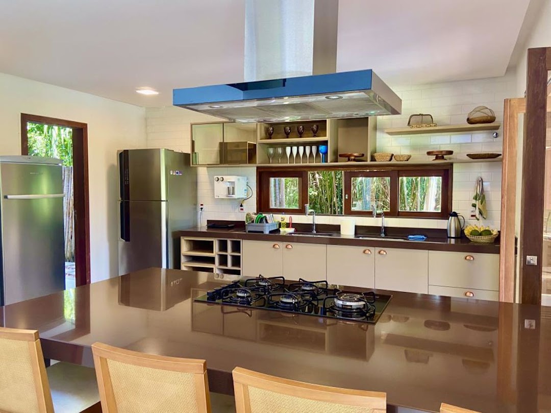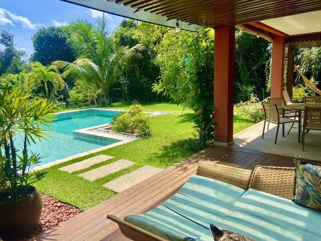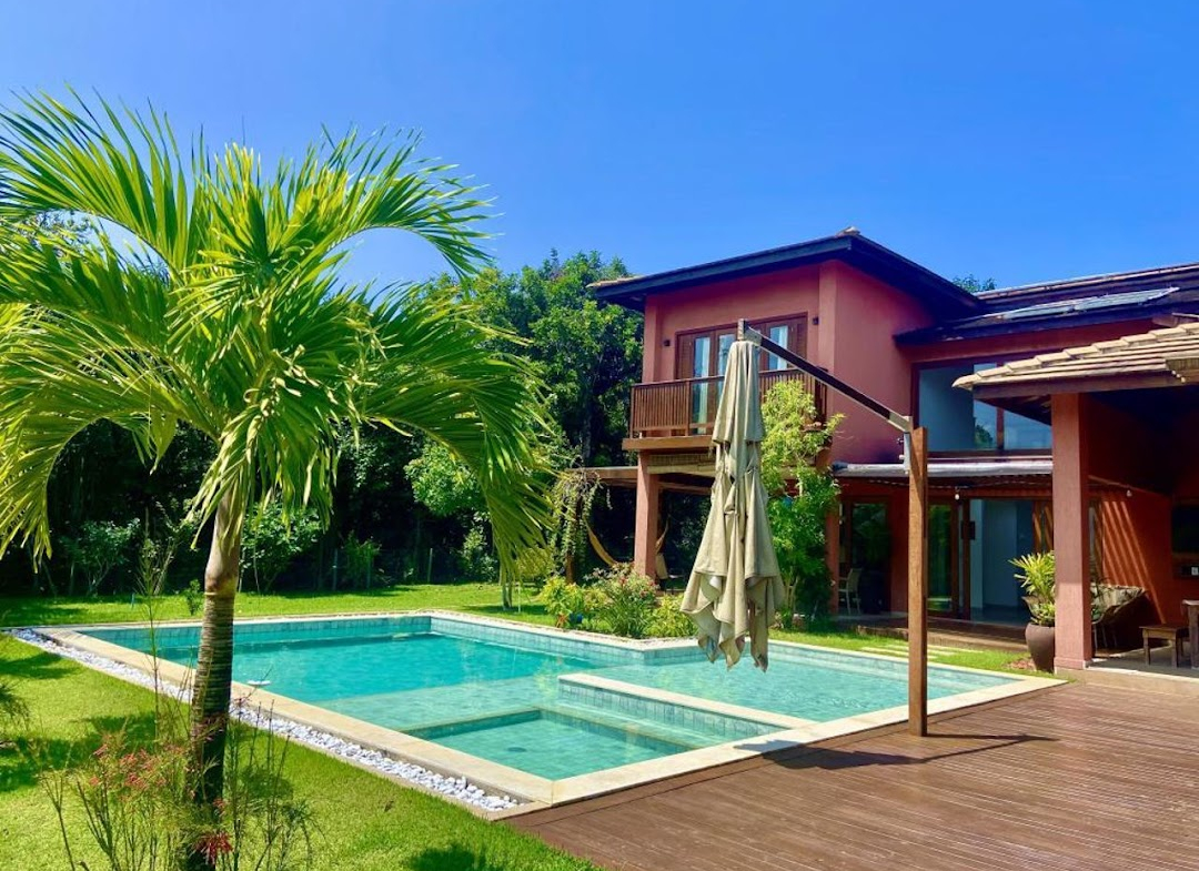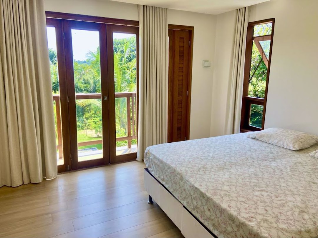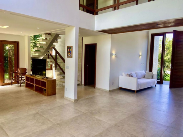 High-End Beach House in the Ilha dos Pássaros Condominium – Praia do Forte. This stunning beach house, situated on an 800 m² lot with 426.55 m² of built area, combines modernity and integration in its architectural design. Spread across two floors, this residence is ideal for those seeking comfort, luxury, and proximity to nature. Upper Floor: On the upper floor, a hallway leads to three additional suites, all featuring balconies that offer pleasant views. Suite 2 measures 11.26 m² with a 1.87 m² balcony, while Suite 3 features 15.48 m² and a 5.78 m² balcony. Suite 4, with 15.01 m², has a 3.40 m² balcony. Outdoor Area: The outdoor area is a true leisure retreat, featuring a swimming pool equipped with a shallow deck area and hydromassage, surrounded by a hardwood deck (Cumaru), perfect for enjoying sunny days. The space also includes an outdoor powder room, a landscaped garden with various species of fruit trees, and parking for four vehicles. Highlights and Improvements: • Custom cabinetry in all suites. • High-quality flooring and wall coverings by Portobello. • DECA sanitary ware and fixtures. • Hardwood window and door frames. • Solar water heating system with pressurized water. • Photovoltaic solar energy system with 12 panels, totaling 24 m² and a capacity of 4.86 kW, connected to the COELBA grid. • Landscaping with an automated irrigation system.