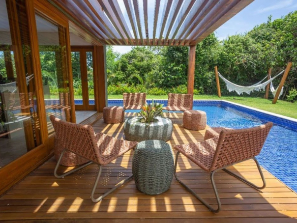 Located in one of the most prestigious gated communities in Praia do Forte. • Lot area: 700m²; • 05 suites; • Swimming pool with hydromassage and deck; • Demuner window frames; • Finely furnished; • Gourmet area; • Access to the community club featuring a swimming pool, gourmet space, multi-sport court, tennis court, children’s playground, playroom, gym, and nautical support. • The only gated community in Praia do Forte that features a river for water sports.