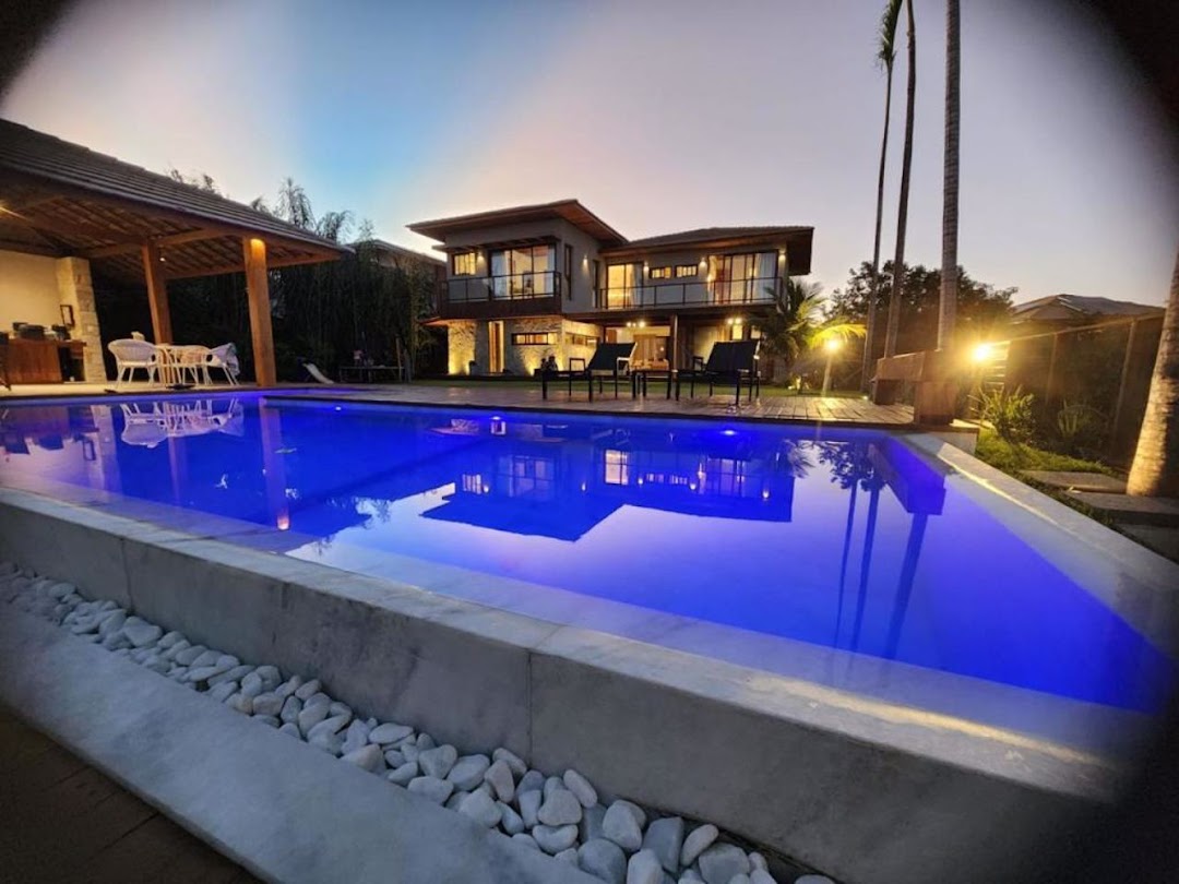 Beautiful high-end house, located in an exclusive gated community of lots in a stunning natural setting at the entrance to Praia do Forte, with complete leisure infrastructure. • Best lot in the community with 800 m²; • Over 800 m of built area; • Corner house, only 1 neighbor. Surrounded by the Atlantic Forest and with ocean views of almost all of Praia do Forte; • House with 6 suites, 4 with ocean views; • Built with meticulous attention to detail less than 1 year ago, for residential use; • Basement and comfortable garage with over 200 m for possible expansion of + 4 suites or wine cellar or gym; • Dining room and TV room integrated in 100 m² and air-conditioned; • Complete kitchen with island, pantry, dishwasher, and cabinets; • Pool entirely in special granite with infinity edge and hot tub for 6 people; • Entire house built with double walls; • Solar power system, solar water heater; • Pantry, powder room in translucent marble, double-height ceiling; • Entire house clad in natural stone; • PVC window frames; • Complete gourmet area with outdoor shower, powder room, storage; • Automated irrigation, well with reservoir; • Landscaping with 12 m tall palm trees with over 400 m of lawn with possibility of creating a small soccer field or beach tennis court. • Project designed by Camilo Baiardi;