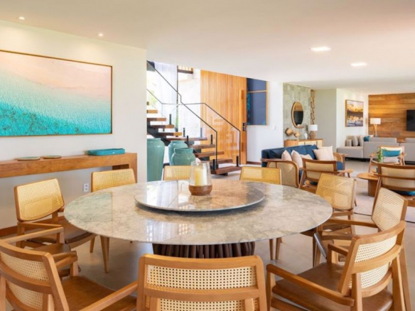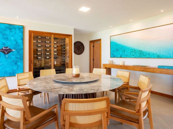 Casa Maré – with over 800m² of built area including an exclusive rooftop, every detail of this house has been carefully designed and finely decorated to provide an exceptional comfort experience, being a true luxury retreat. • Land area: 1,008m²; • Built area: 800m²; • Eight spacious suites and complete infrastructure, this residence offers the ultimate in comfort and elegance. Enjoy stunning panoramic views of the ocean, coconut groves, and the golf course of the Iberostar Praia do Forte condominium; • On the ground floor: Spacious Suite and Bathroom with Winter Garden: A spacious and elegant suite, ideal for guests or family members, complete with a bathroom featuring a charming winter garden; • Climate-Controlled Wine Cellar; • Gourmet Space; • Automation System; • Illuminated Pool with Hydromassage and Wet Deck: A stunning pool with ocean views, ideal for leisure and relaxation moments, complete with hydromassage, wet deck, swimming lane and a waterfall, plus two decks with sun loungers and a table to enjoy the tropical climate; • Sauna; • Spacious Service Area; • Private Parking for 6 Cars; • On the upper floor: Seven Suites, two of them Master: Each suite is an oasis of comfort and privacy, with high-quality finishes and a serene atmosphere. The master suites feature private balconies with ample seating area, providing stunning views of the ocean, coconut groves, and golf course, allowing residents to enjoy the natural beauty surrounding them; • Outdoor Entertainment Space: The rooftop of this residence is a true luxury retreat, offering a perfect environment for outdoor entertainment and relaxation. With a table for eight people, comfortable sofas and armchairs, this space invites residents and their guests to enjoy special moments in a serene and stunning atmosphere; • Location and exclusive amenities: This magnificent residence is located within the renowned Iberostar condominium in Praia do Forte. Enjoy complete security and tranquility in a protected environment, ensuring peace of mind for residents.