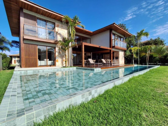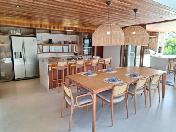 Prepare to be enchanted by this spectacular beach house, a true gem in paradise. This property combines sophistication and sustainability, offering the finest comfort with solar energy. • 385 m² of built area on an 800 m² lot; • 05 beautifully appointed suites; • Thoughtfully designed to provide privacy, comfort, and elegance, this house is the ideal place to gather family and friends for moments of pure tranquility; • The spacious interiors feature a welcoming design, filled with natural light, where every detail contributes to creating a relaxing atmosphere; • Outside, the leisure area impresses with a poolside gourmet space; • 07 parking spaces; • Condominium with pool and deck, fully equipped gym, multi-sport courts, event hall, extensive green areas, and 24-hour security with gatehouse.