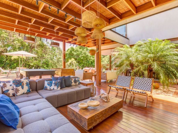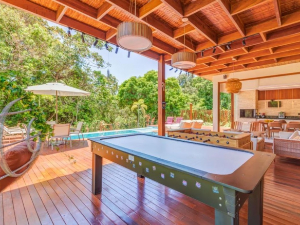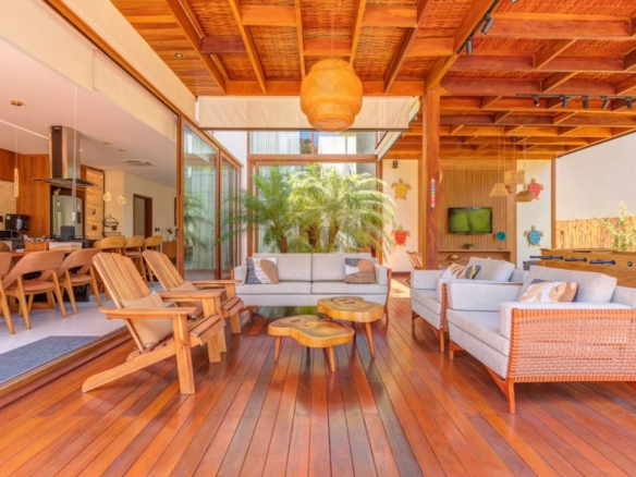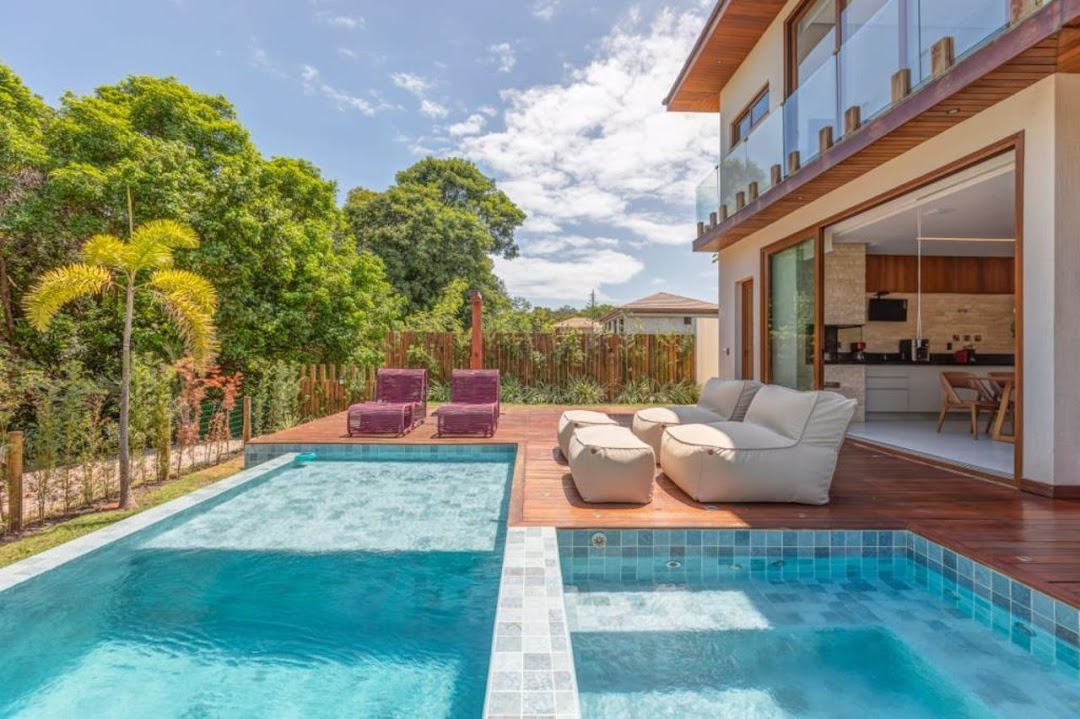 Located in one of the most exclusive gated communities in Praia do Forte, with direct beach access. • Lot area: 594m²; • Built area: 450m²; • Two-story house; • Architectural project by Gaspar and Wiltson; • Integrated living areas, high-quality furniture and equipment, professionally decorated, gourmet area with barbecue, aluminum frames with wood-look finish, and a game room; • East-facing orientation; • Close to the clubhouse and the ocean.