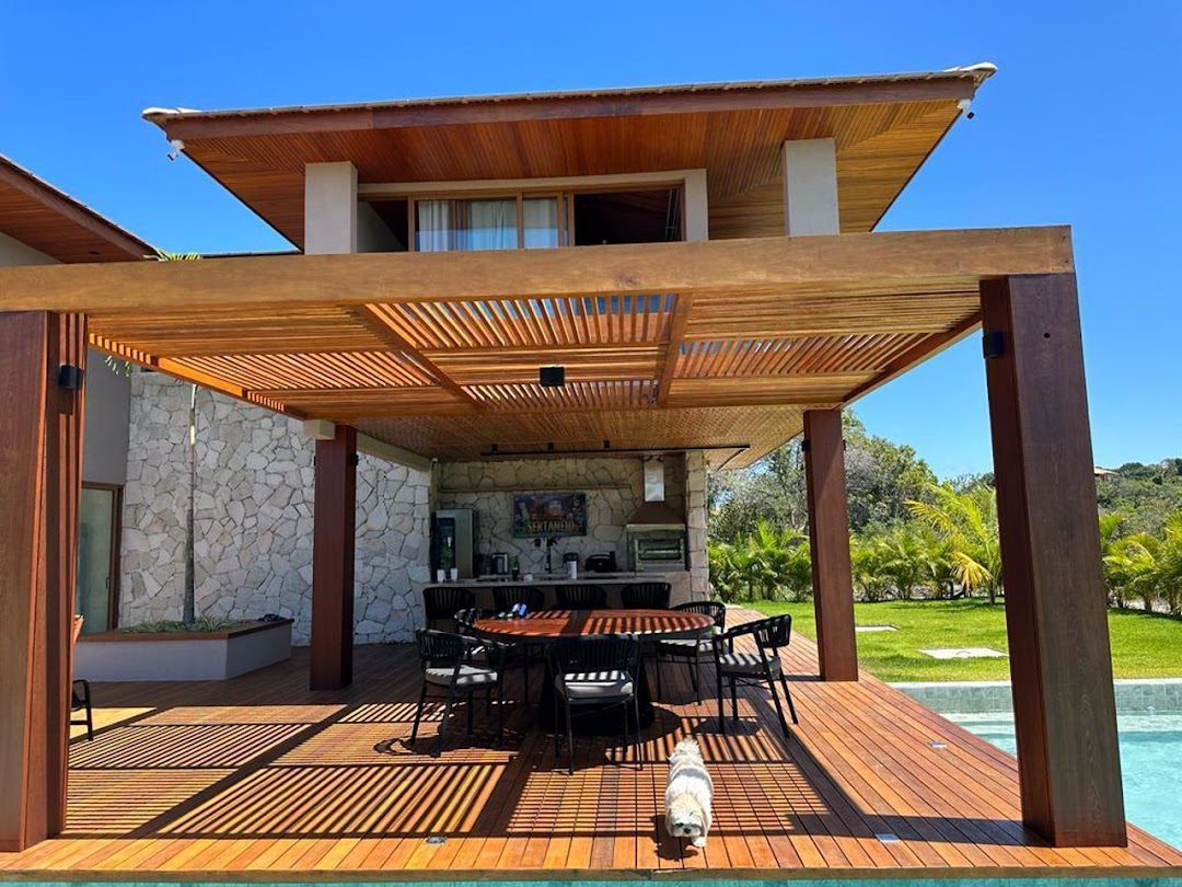 Excellent house in a high-standard condominium in Praia do Forte, with exclusive access to the best beach in the region. • Land area 700m² • Built area 450m²; • 5 suites; • Complete service quarters; • Dining and living room, integrated gourmet area and a large swimming pool facing the green area; • 4 parking spaces; • Condominium with private club, pool bar, fitness area, party area, multi-sport court, barbecue area, tennis court, soccer field, volleyball court, children’s playground, gym; • Security gatehouse and beach access control;