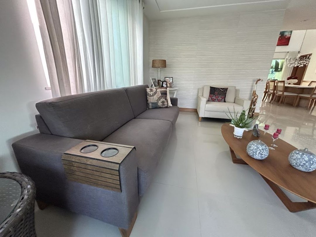 The houses and lots in Alphaville Litoral Norte 1 follow modern architectural standards and offer excellent appreciation potential, attracting families and investors seeking a safe, well-planned place to live or invest. 4 bedrooms, all en-suite with walk-in closets 1 staff quarters and 1 pantry Private pool and gourmet area Spacious living room with double-height ceiling and balcony Built area of 230 m² on a 475 m² lot 4 covered parking spaces for your convenience 5,000-liter tank, artesian well, and boiler with solar panel for water heating 1 guest bathroom for visitors 2,500-liter water reservoir