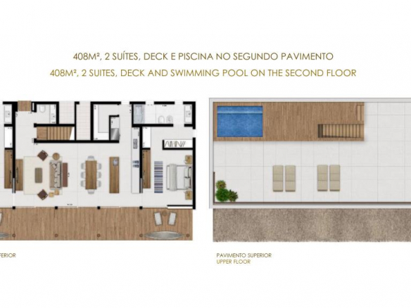 Villa Fasano 1 and 3 – 408m2, 2 or 3 bedrooms with deck and pool on the second floor.